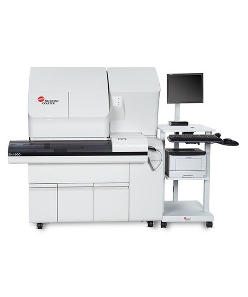 The Beckman Coulter UniCel DxI 600 is an automated immunoassay analyzer designed for medium-volume laboratories, offering a throughput of up to 200 tests per hour. It features an onboard capacity of up to 60 samples, including STAT and routine tests, with continuous loading capability to streamline sample processing.